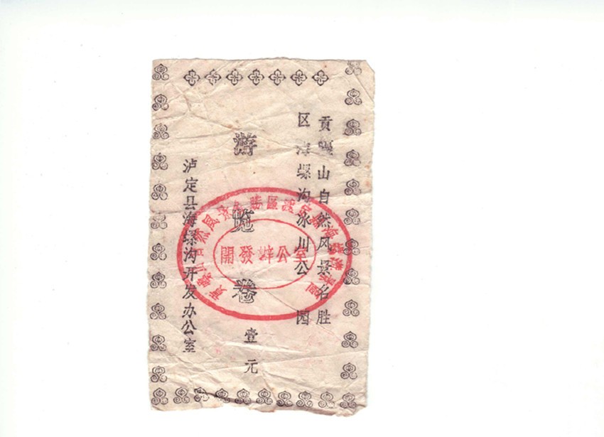 時(shí)間一晃到了7月份,海螺溝達(dá)到了“有節(jié)制接待”條件。在我向?qū)O前匯報(bào)請(qǐng)示,并得到同意后,七月十日將自己構(gòu)思,手工制作的海螺溝“游覽卷”樣卷送孫前過(guò)目,并獲通過(guò)。于是我買(mǎi)來(lái)5色紙,從瀘定縣印刷廠借來(lái)“游覽卷”三個(gè)中號(hào)印刷鉛字釘,指導(dǎo)打字員排版打印在臘紙上。游覽卷分為國(guó)內(nèi)和國(guó)外游客兩種門(mén)卷。用白、蘭、綠三色紙油印壹元面值的國(guó)內(nèi)游客門(mén)卷;黃、紅二色紙油印貳元面值的海外游客門(mén)卷。門(mén)卷規(guī)格尺寸為長(zhǎng)9.5厘米,寬6厘米,四邊打印花邊圖案,右邊打印豎排兩行“貢嘎山自然風(fēng)景區(qū)海螺溝冰川公園”;左邊打印豎排“瀘定縣海螺溝開(kāi)發(fā)辦公室”的落款;門(mén)卷正中豎印 “游覽卷”三個(gè)字,下方油印面值“壹元”或“貳元”。門(mén)卷面值充當(dāng)起游客進(jìn)海螺溝的憑證。門(mén)卷加蓋一枚雕刻繁體字“貢嘎山自然風(fēng)景名勝區(qū)瀘定縣海螺溝景區(qū)開(kāi)發(fā)辦”的紅印章。門(mén)卷出售第一天就順風(fēng)順?biāo)?。?jù)1987年8月17日海辦《情況簡(jiǎn)報(bào)》第二期記載:1987年7月14日海螺溝門(mén)票站在磨西中街掛牌成立。當(dāng)日出售給成都石化廠5名有獎(jiǎng)旅游職工壹元國(guó)內(nèi)卷5張,15日出售15張國(guó)內(nèi)門(mén)卷。到7月最后一天,半個(gè)月售出國(guó)內(nèi)門(mén)卷146張。游客來(lái)自上海、南京、西安、北京、昆明、廣東、成都、重慶?!逗B轀下糜沃尽罚?/span>1984—1995)中記載,海螺溝門(mén)卷從1987年7月14日啟用,當(dāng)年售出門(mén)卷1219張,其中國(guó)內(nèi)卷1169張,海外卷50張,旅游綜合效益4.87萬(wàn)元。