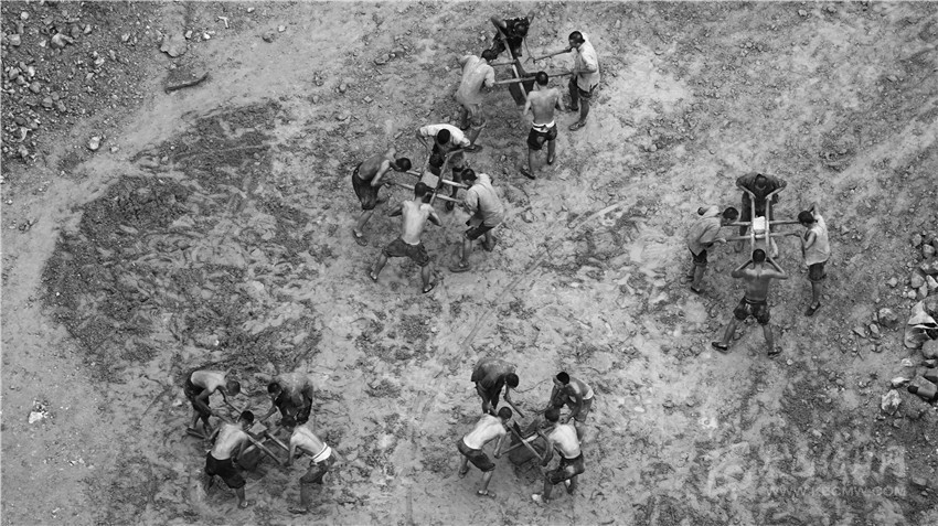 當年的二郎山公路就是這樣靠人工修出來的。郭昌平 提供