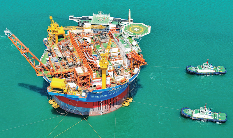“海葵一號”,是亞洲首艘圓筒型浮式生產(chǎn)儲卸油裝置。該裝置集原油生產(chǎn)、存儲、外輸?shù)裙δ苡谝惑w,被網(wǎng)友們昵稱為“超級能源碗”,也是完全由我國自主設計建造的海上油氣加工廠。圖為2024年5月12日,“??惶枴睆闹袊S颓鄭u國際化高端裝備制造基地離港啟運。 人民圖片 張進剛/攝