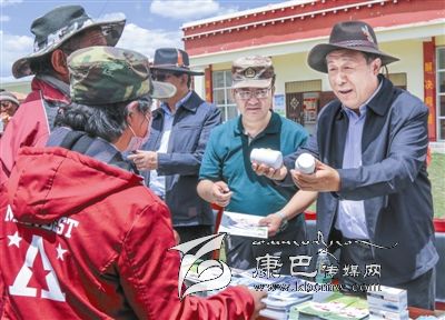 調(diào)研中,于康震一行還在色須鎮(zhèn)開(kāi)展的包蟲(chóng)病科技下鄉(xiāng)活動(dòng)現(xiàn)場(chǎng),向前來(lái)咨詢(xún)的農(nóng)牧民群眾發(fā)放宣傳資料和驅(qū)蟲(chóng)藥品。他對(duì)群眾們說(shuō),今天我們來(lái)這里送知識(shí)、送物資、送藥品、送技術(shù),目的就是為了更好地防控包蟲(chóng)病。包蟲(chóng)病能否控制住,關(guān)鍵取決于廣大農(nóng)牧民群眾,大家如果能按照防控知識(shí)和技術(shù)去做,包蟲(chóng)病防控工作就成功了一大半。