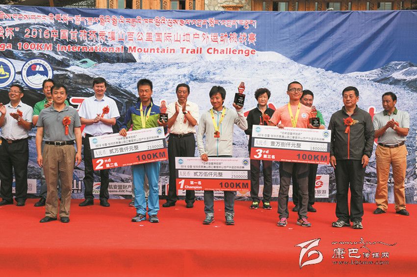27日凌晨5時(shí),參賽選手從康定情歌廣場出發(fā)后,運(yùn)動員們不畏艱險(xiǎn),你追我趕,各顯神通,拼盡全力,最終完成了50公里和100公里的賽程。經(jīng)過激烈的角逐,實(shí)力強(qiáng)勁的運(yùn)艷橋以13小時(shí)零48秒的成績將男子組100公里冠軍獎牌收入囊中,姚妙以14小時(shí)39分32秒的成績獲得女子組100公里冠軍;50公里男子組、女子組冠軍分別被明定邦和牛麗華摘取,成績分別是5小時(shí)38分12秒和6小時(shí)58分38秒。閉幕式現(xiàn)場,賽事組委會為獲得各項(xiàng)賽事前三名的選手頒發(fā)了獎金、獎杯與獎牌。