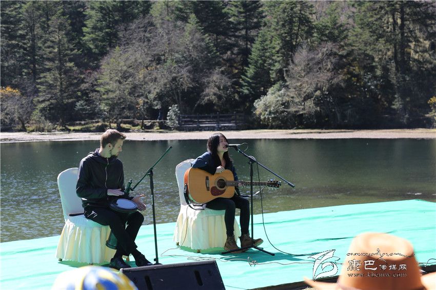 深秋的木格措,漫山遍野披上了金色的外套,七色海也被陽光撒上了一層斑斕的“魚鱗”,泛著星光,很難想象這副如畫的風(fēng)景和不插電音樂將會(huì)碰撞出怎樣的火花。