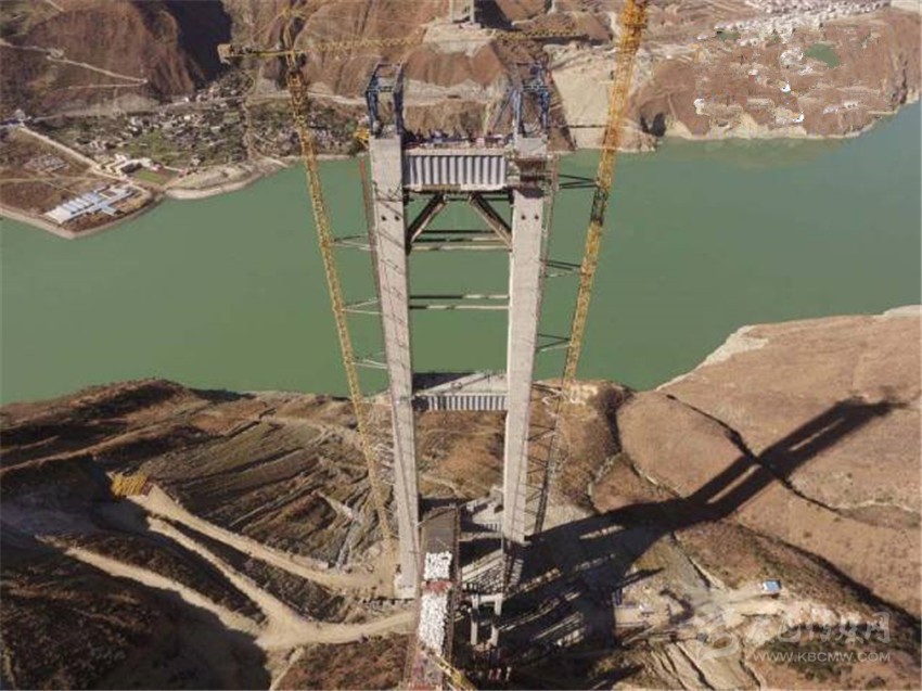 施工中的瀘定大渡河興康特大橋主塔。