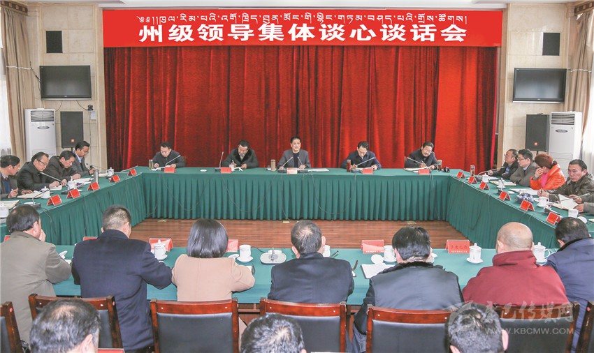 本網(wǎng)訊 (記者 楊杰 文/圖)1月12日上午,州委書(shū)記劉成鳴主持召開(kāi)州級(jí)領(lǐng)導(dǎo)集體談心談話會(huì),與州委、州人大常委會(huì)、州政府、州政協(xié)班子成員集體懇談交流、溝通思想。他強(qiáng)調(diào),州級(jí)領(lǐng)導(dǎo)要進(jìn)一步統(tǒng)一思想,拼盡全力,擰成一股繩,匯聚一股氣,打好甘孜州的“翻身仗”,團(tuán)結(jié)帶領(lǐng)全州各族干部群眾,齊心協(xié)力完成州第十一次黨代會(huì)確定的目標(biāo)任務(wù),確保到2020年與全國(guó)、全省同步全面建成小康社會(huì)。