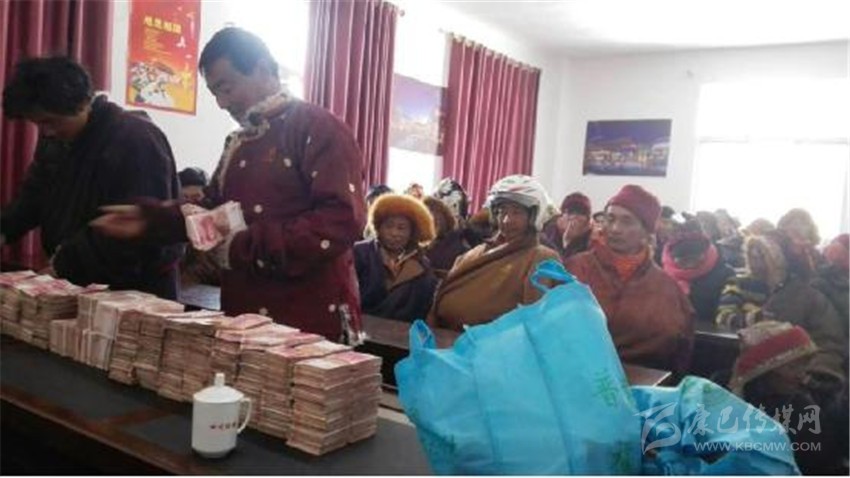 俄達(dá)門巴村民現(xiàn)場(chǎng)領(lǐng)取分紅款。