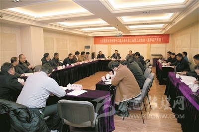 圖為與會(huì)代表認(rèn)真聽取州長(zhǎng)肖友才作政府工作報(bào)告。 (本網(wǎng)記者 張兵 攝)