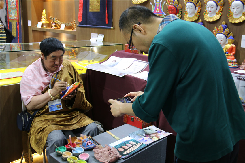 記者又分別走訪(fǎng)幾家參展商,鄉(xiāng)城縣文化旅游局羅絨扎姆說(shuō),我們的十二生肖(唐卡)已經(jīng)賣(mài)出六幅多了,咨詢(xún)的也接二連三,有的訂了單,還有的有意向。接著,部分商家道出心理話(huà)。新龍藥泥面具傳承人四龍降澤說(shuō), 11日就賣(mài)了1700多元;瀘定縣冰川水晶加工廠(chǎng)涂娟說(shuō),兩天銷(xiāo)售凈賺10000元;而藏藝通旅游文化有限公司行政助理格桑達(dá)美說(shuō),這兩天圍巾和小的掛件銷(xiāo)售量比較好,收入接近10000元,隨著周末的到來(lái),人流量會(huì)逐步增加,相信到那時(shí)我們的銷(xiāo)量也會(huì)攀升。
