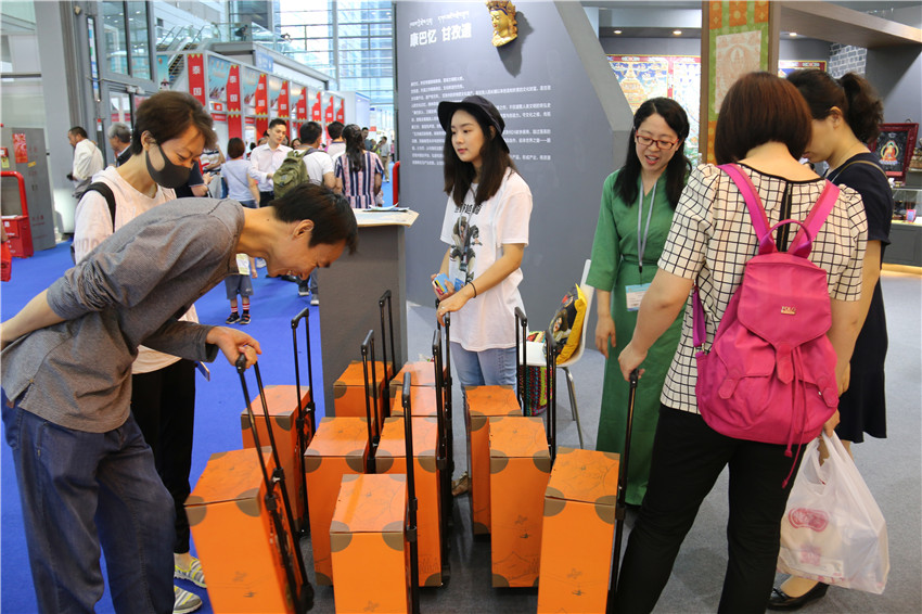 318線(xiàn)精品旅游線(xiàn)路圖、創(chuàng)意拉桿箱;原本一些靜態(tài)的物品被潮流的設(shè)計(jì)之后,在“藝?甘孜”展館門(mén)口屢屢賣(mài)到脫銷(xiāo)。此次文博會(huì),甘孜州全境文化產(chǎn)業(yè)發(fā)展公司順應(yīng)旅游市場(chǎng)推出了一系列“接地氣”的文化創(chuàng)意產(chǎn)品。通過(guò)傳統(tǒng)文化和日常生活的無(wú)縫銜接,旅游、文物在老百姓心中變得更加生動(dòng)有趣、接地氣。該公司運(yùn)營(yíng)總監(jiān)梅小恩說(shuō):“由于多次參加布展,考慮到消費(fèi)者購(gòu)物后,攜帶很不方便。于是前期公司就設(shè)計(jì)制成這款具有康巴文化的文創(chuàng)產(chǎn)品IP形象,雖然是一款紙箱,但款式都以真皮箱相仿,設(shè)計(jì)理念是康巴漢子騎著摩托車(chē)奔馳在318線(xiàn)上,這一理念得到了市民認(rèn)同,前來(lái)購(gòu)買(mǎi)的人很多,消量特別好。下步將立馬上線(xiàn),推出皮箱系列,到今天為止訂單都很多了。”