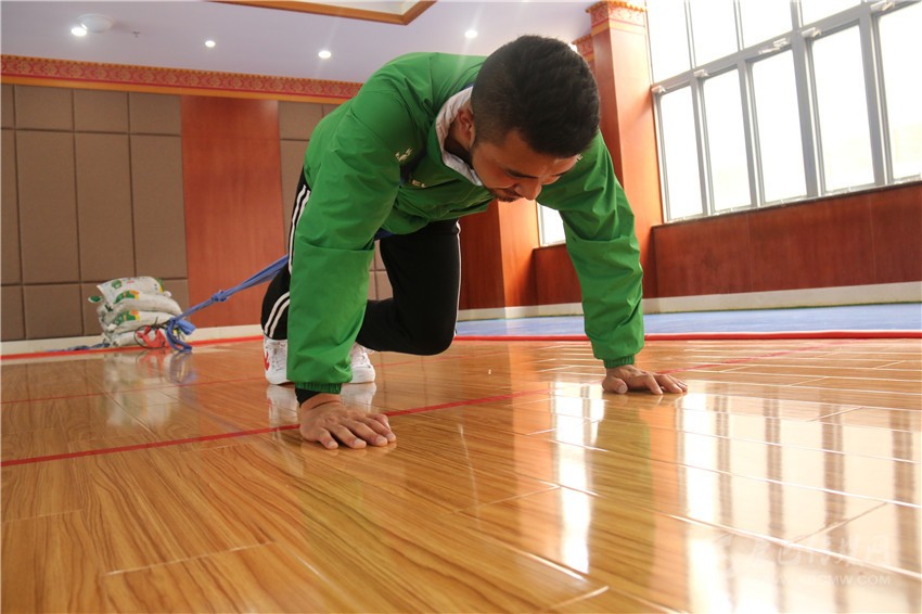 “你們平時是怎么訓(xùn)練的?”“押加最講究的就是手腳配合的爆發(fā)力,所以平時我們都通過跑步、杠鈴、俯臥撐等運動來訓(xùn)練頸部、腿部、手部、腰部等的力量。但是押加運動又極其容易受傷,我們一起的隊員就由于受傷還在療養(yǎng),我們都是邊療養(yǎng)邊訓(xùn)練的。押加是分體重按級別進行比賽,所以控制體重是關(guān)鍵,我要在30天內(nèi)減掉30斤,反正就是營養(yǎng)要跟上、體重要下降、訓(xùn)練要不停、力量要增強?!?/p>
