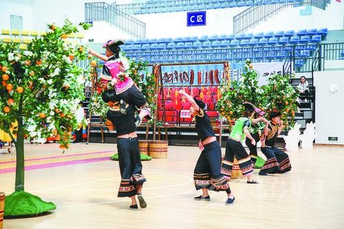 雅安市代表團(tuán)教練李鏡文告訴記者,《石炯諧博》表演項(xiàng)目依托當(dāng)?shù)匾图颐袼祝邳S果柑豐收的季節(jié),石棉縣彝族小伙、姑娘們?cè)诠掷锊烧S果柑時(shí)所產(chǎn)生的勞動(dòng)趣味競(jìng)技活動(dòng)的演繹,反映了少數(shù)民族地區(qū)經(jīng)濟(jì)發(fā)展、社會(huì)繁榮穩(wěn)定、各族人民安居樂業(yè)的生活和精神風(fēng)貌。
