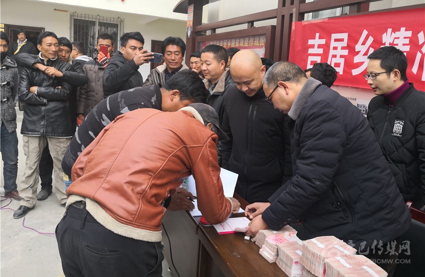 企業(yè)家葉鑫林在康定市吉居鄉(xiāng)開展精準(zhǔn)扶貧工作。