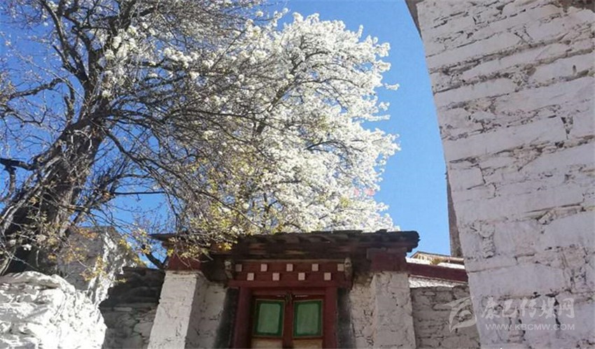 中路鄉(xiāng),梨花掩映著藏寨。(韓一雪攝)