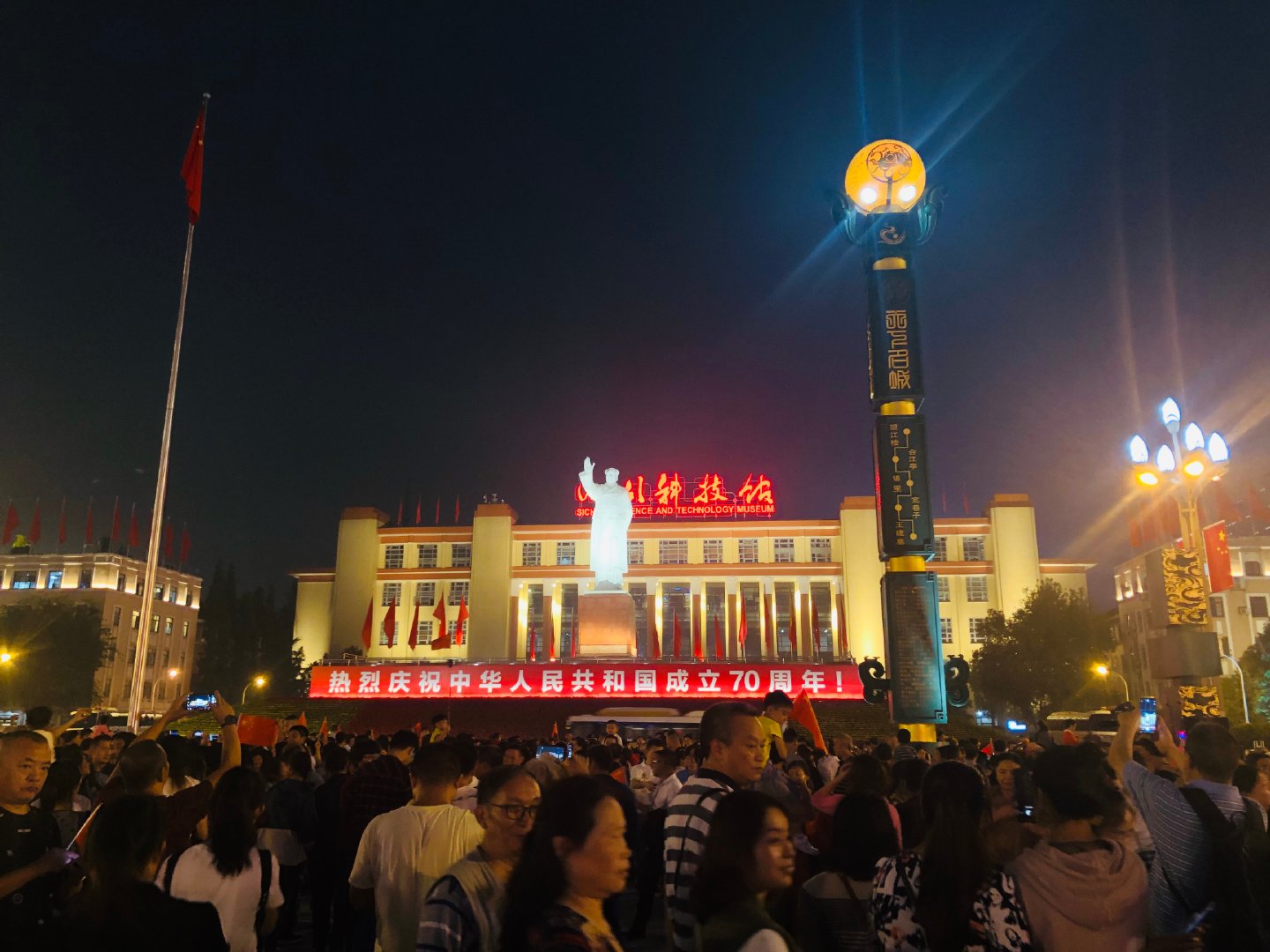 為慶祝新中國成立70周年,成都市開啟超級(jí)夜景模式。四川大劇院、四川美術(shù)館、四川省圖書館、成都市博物院等建筑被大型投影包裹,美輪美奐!群眾紛紛拍照留念,還有群眾激動(dòng)地在現(xiàn)場合唱《我和我的祖國》,祝福祖國母親生日快樂。