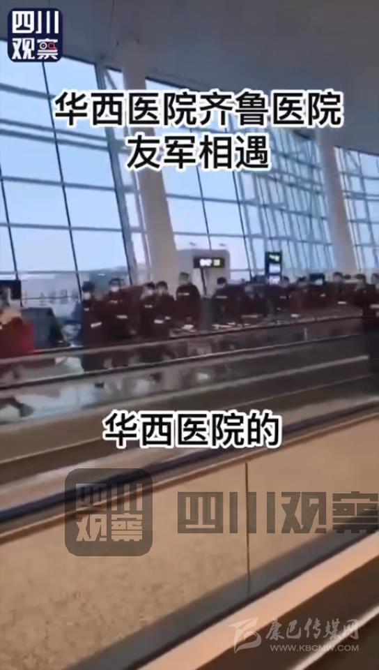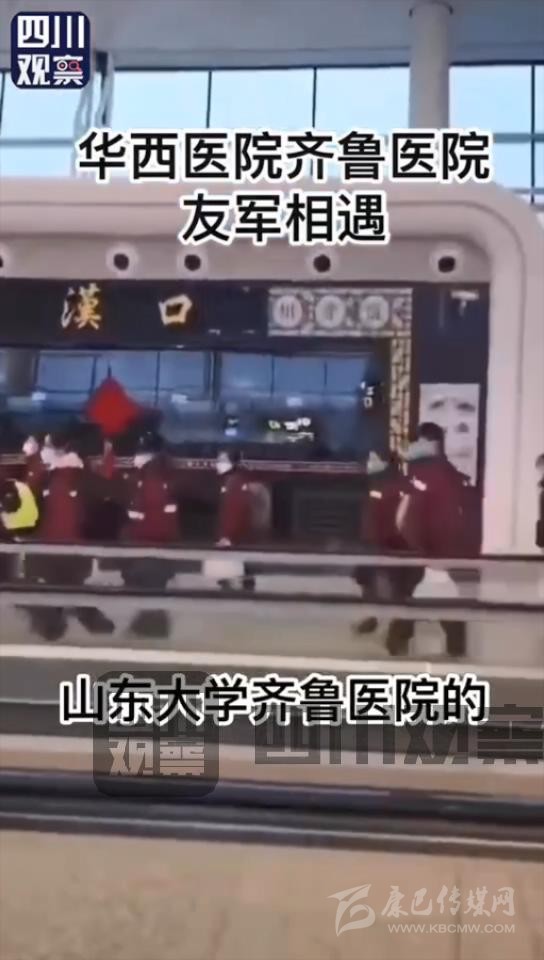 2月7日,四川大學(xué)華西醫(yī)院和山東大學(xué)齊魯醫(yī)院的援助隊在武漢天河機場相遇,兩隊醫(yī)生護士隔空呼喊“加油”。據(jù)悉,他們將共同接管武漢大學(xué)人民醫(yī)院東院區(qū)。