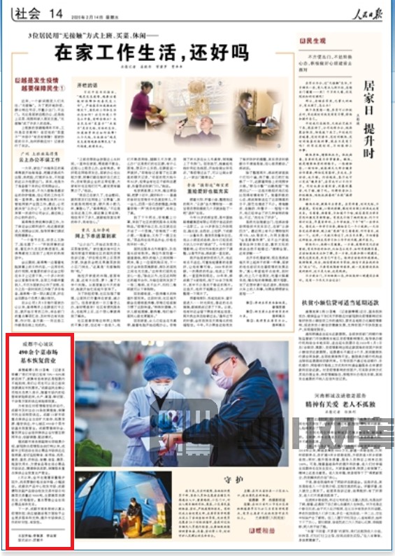2月14日出版的《 人民日報 》報道了成都市為有效應(yīng)對疫情穩(wěn)定經(jīng)濟(jì)運(yùn)行,出臺20條政策措施,保障市民生活物資供應(yīng)的舉措。目前,成都市市場供應(yīng)充足。