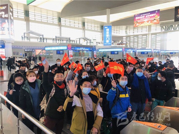 11:30分,D4755次返崗專列緩緩啟動。 站臺上的,前來送行的省農民工服務中心工作人員們使勁揮起了雙手。車廂里,有的農民工揮起了印有“一路平安”的小紅旗,有的隔著車窗豎起了大拇指……這讓省人社廳返崗服務專班交通保障組組長、省農民工服務中心副主任秦家雷眼眶濕潤。秦家雷介紹,D4755次返崗專列的組織工作于2月18日開展,通過人社、交通、衛(wèi)健、鐵路等部門系統(tǒng),以及全省各市(州)、縣、鎮(zhèn)、村的大力配合,在不到兩天時間內,完成了917名返崗人員的摸排、健康體檢、車票購買諸多事項,充分體現了各系統(tǒng)各部門對農民工的關心關愛,對復工復產抗擊疫情的努力和信心。