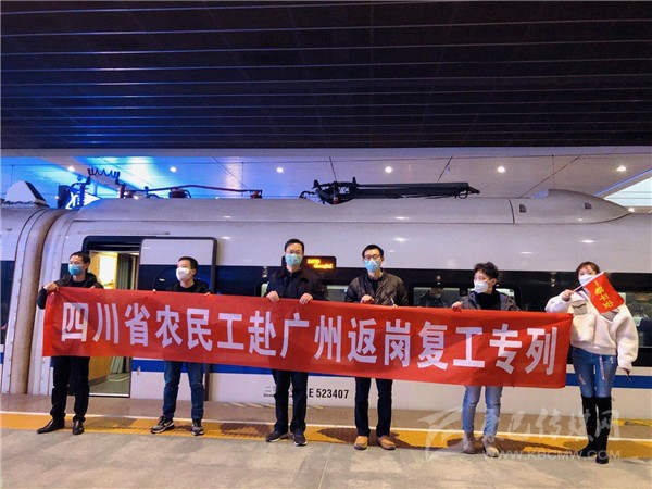 2月20日上午11:30,滿載著917名川籍農民工的D4755次返崗專列,從成都東出發(fā)一路駛往廣州南。這是今年春節(jié)后我省首趟開往廣東省的農民工返崗專列,也是我省與廣東在新冠病毒疫情期間勞務協(xié)作共識達成后,開行的首趟農民工返崗專列。此次專列開行,極大滿足了疫情期間我省農民工外出務工需求,同時也為廣東省企業(yè)復工復產提供了勞動力支持。此趟專列票務費用由廣東省人社廳承擔,農民工免費乘坐。