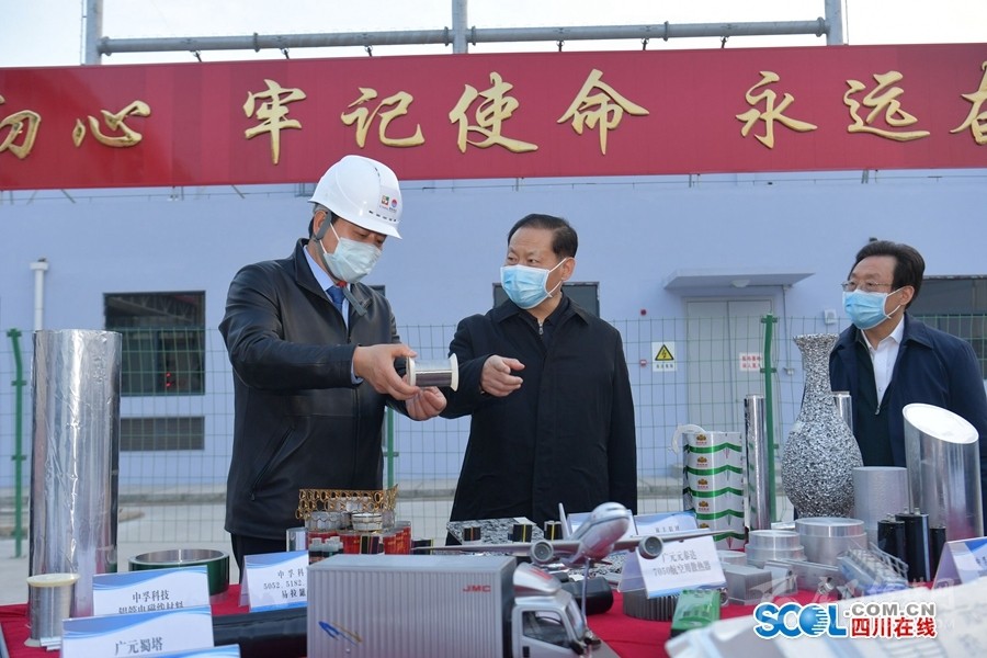 2月24日,彭清華書記到廣元經(jīng)開區(qū)中孚鋁業(yè)公司調(diào)研,觀看企業(yè)產(chǎn)品展示,了解電解鋁產(chǎn)業(yè)發(fā)展情況。