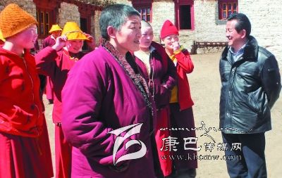 在雅江縣委、縣人大常委會主要領(lǐng)導(dǎo)及統(tǒng)戰(zhàn)、宗教部門的陪同下,李康來到距縣城90多公里的雅江縣紅龍鄉(xiāng)158k覺姆寺,同寺管會成員和部分僧尼進(jìn)行座談。他詳細(xì)了解寺廟的基本情況,仔細(xì)詢問僧尼的生產(chǎn)生活和寺廟佛事活動(dòng)開展情況,認(rèn)真傾聽僧尼的反映和訴求,對僧尼提出的困難和問題詳細(xì)記錄,認(rèn)真答復(fù),耐心細(xì)致地講解宣傳黨的民族宗教和惠寺惠僧政策。座談會上,李康主任簡短的開場白很快拉近了大家的距離,他說,這次專門到寺廟的目的就是看望大家,建立聯(lián)系,了解情況,收集問題,希望大家暢所欲言,互相溝通,加強(qiáng)交流,增進(jìn)了解,共同推進(jìn)寺廟的健康有序發(fā)展。當(dāng)他了解到該寺的水、電問題在縣委、政府的關(guān)心重視下,今年即將得到解決時(shí),他說,州、縣黨委、政府歷來十分關(guān)心寺廟的基礎(chǔ)設(shè)施建設(shè)和廣大僧尼的生產(chǎn)生活、健康醫(yī)療等問題,寺廟的水電、道路、通信等基礎(chǔ)設(shè)施始終得到了黨委、政府的關(guān)心支持,僧尼的醫(yī)保、養(yǎng)老和最低生活保障等生活保障措施正在全州寺廟全面覆蓋。對寺廟的其他困難和問題,州、縣將積極協(xié)調(diào),盡快解決。他強(qiáng)調(diào)指出,158k覺姆寺近年來通過縣委、政府綜合施策,強(qiáng)化教育,規(guī)范管理,寺廟整體情況良好,步入了依法管理的良性軌道。他講到,我們黨的民族宗教政策是長期的、一貫的,寺廟作為基本社會單元,僧尼作為普通公民和基本群眾,要自覺接受當(dāng)?shù)攸h委、政府依法管理,維護(hù)祖國統(tǒng)一、民族團(tuán)結(jié)和法制尊嚴(yán),推動(dòng)宗教與社會主義社會相適應(yīng),與現(xiàn)代文明進(jìn)程相協(xié)調(diào),積極投入全州發(fā)展中來,共同建設(shè)好我們的和諧幸福家園。任何寺廟只要服從當(dāng)?shù)攸h委、政府的管理,認(rèn)真貫徹落實(shí)好藏傳佛教的各項(xiàng)管理規(guī)定,真正發(fā)揮好宗教的正面積極作用,寺廟才會得到黨委、政府更多的關(guān)心支持,才會得到更好的健康發(fā)展。他希望158k覺姆寺要依法加強(qiáng)宗教事務(wù)的管理,深入貫徹落實(shí)《甘孜州藏傳佛教事務(wù)條例實(shí)施細(xì)則》,促進(jìn)依法治寺、規(guī)范管寺,為維護(hù)正常宗教秩序、服務(wù)經(jīng)濟(jì)社會發(fā)展、促進(jìn)社會和諧穩(wěn)定做出積極貢獻(xiàn)。