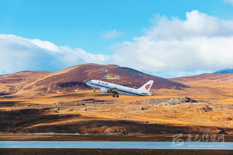 飛機(jī)在稻城亞丁機(jī)場(chǎng)起飛。