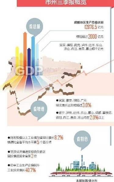 從增速看,宜賓、雅安、綿陽、廣元4市增速“破3”,宜賓達到3.3%;上半年一度負增長的4個市州也全面扭轉(zhuǎn)下滑勢頭,前三季度增速全部轉(zhuǎn)正。