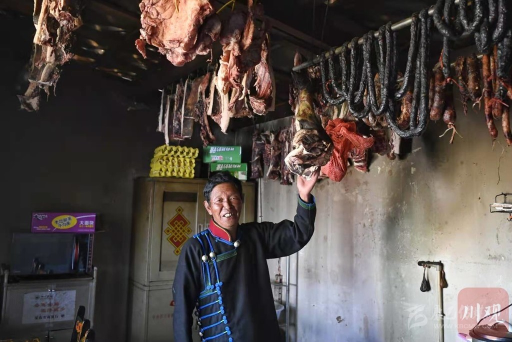 吉地爾子家懸掛著臘肉、香腸。 何勤華 楊樹 攝