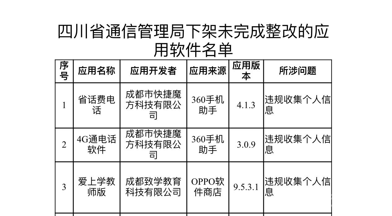 12月9日,工業(yè)和信息化部下架106款侵害用戶權(quán)益APP,其中四川3款。