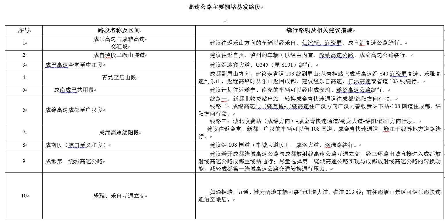 據(jù)氣象部門信息,元旦期間以多云或晴天為主,基本無惡劣天氣,適宜外出。結(jié)合我省疫情防控情況和小長(zhǎng)假出行特點(diǎn),預(yù)計(jì)元旦假期,群眾出行以省內(nèi)探親、短途出游為主,多集中在成都及其周邊地區(qū),部分通往冬季熱門景區(qū)的路段流量將較大增長(zhǎng)。
