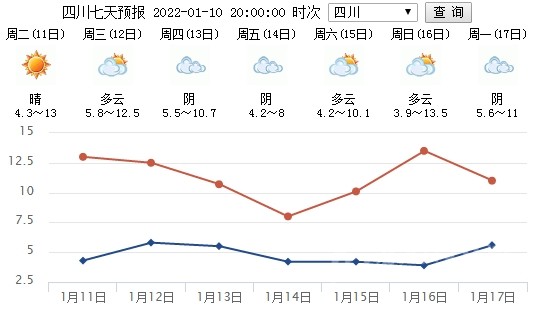 預(yù)計(jì)12日開(kāi)始,盆地會(huì)有一次降水天氣過(guò)程,日平均氣溫也會(huì)隨之累計(jì)下降2~4℃。