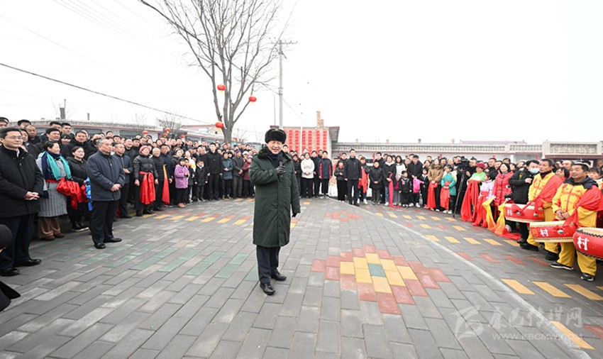 村文化廣場上十分熱鬧,村民們打起威風(fēng)鑼鼓、扭起秧歌歡慶佳節(jié)。看到總書記來了,人們高興地歡呼起來。習(xí)近平對鄉(xiāng)親們說,我們黨的根本宗旨就是為人民群眾辦好事,為人民群眾幸福生活拼搏、奉獻、服務(wù)。我們?nèi)缙诖蜈A了脫貧攻堅戰(zhàn),如期實現(xiàn)了全面建成小康社會目標,現(xiàn)在踏上了全面建設(shè)社會主義現(xiàn)代化國家新征程。建設(shè)現(xiàn)代化國家離不開農(nóng)業(yè)農(nóng)村現(xiàn)代化,要繼續(xù)鞏固脫貧攻堅成果,扎實推進鄉(xiāng)村振興,讓群眾生活更上一層樓,在推進農(nóng)業(yè)農(nóng)村現(xiàn)代化中越走越有奔頭。