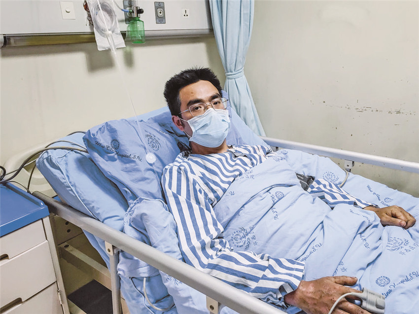 斜躺在病床上的甘宇戴著一副新配的眼鏡,面對媒體的提問應(yīng)答流暢、思路清晰、笑容溫和、語調(diào)平緩。