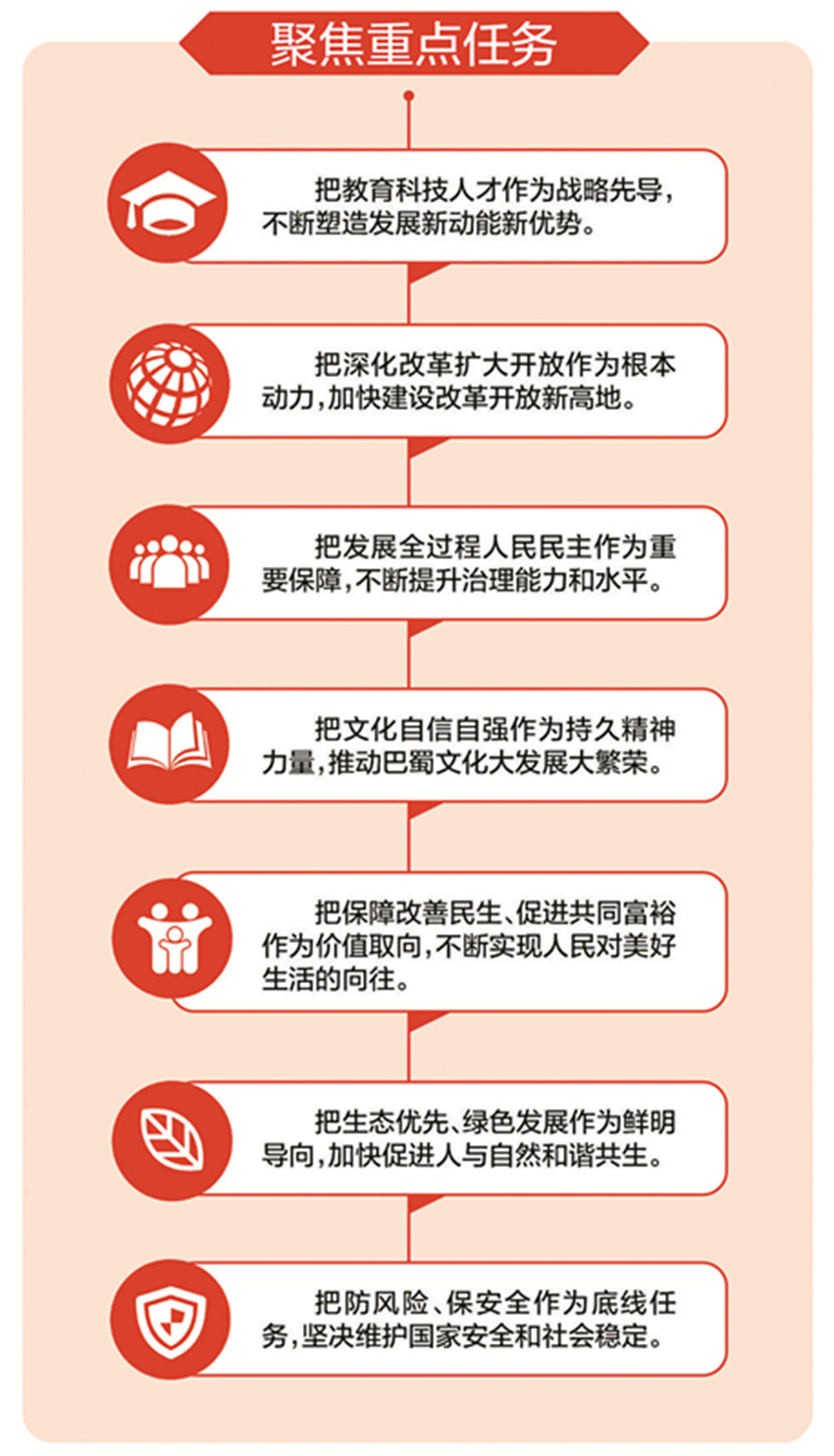 全會(huì)文件中的一些表述令人豁然開朗:全面建設(shè)社會(huì)主義現(xiàn)代化四川,是新時(shí)代治蜀興川的總目標(biāo)總?cè)蝿?wù);要以成渝地區(qū)雙城經(jīng)濟(jì)圈建設(shè)為總牽引,以“四化同步、城鄉(xiāng)融合、五區(qū)共興”為總抓手,堅(jiān)持“講政治、抓發(fā)展、惠民生、保安全”工作總思路,在新的征程上奮力譜寫四川發(fā)展新篇章。