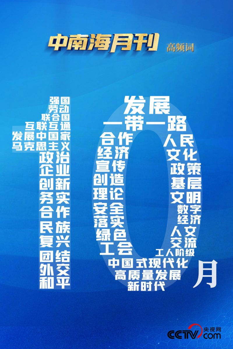 央視網(wǎng)《中南海月刊》運用智能大數(shù)據(jù),與您一起回顧金秋10月的中華大地,在習近平新時代中國特色社會主義思想的引領下,奮進前行的腳步。