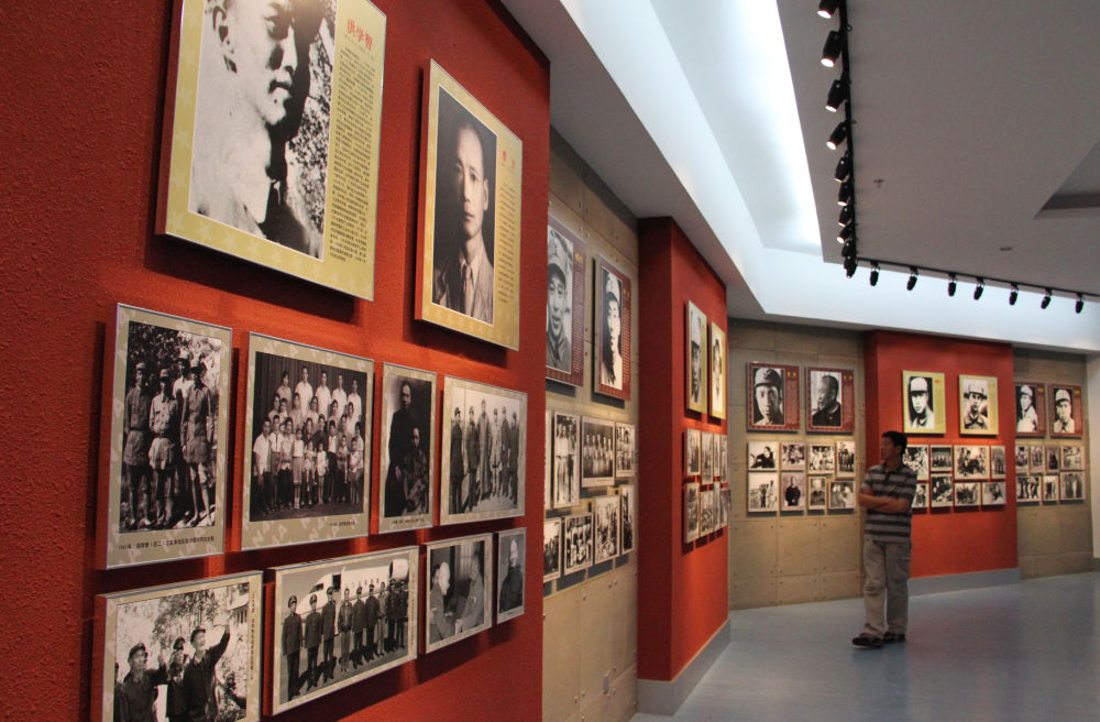 ↑ 觀眾在鹽城新四軍紀念館新建的人物館內瀏覽圖片資料(2011年5月26日攝)。