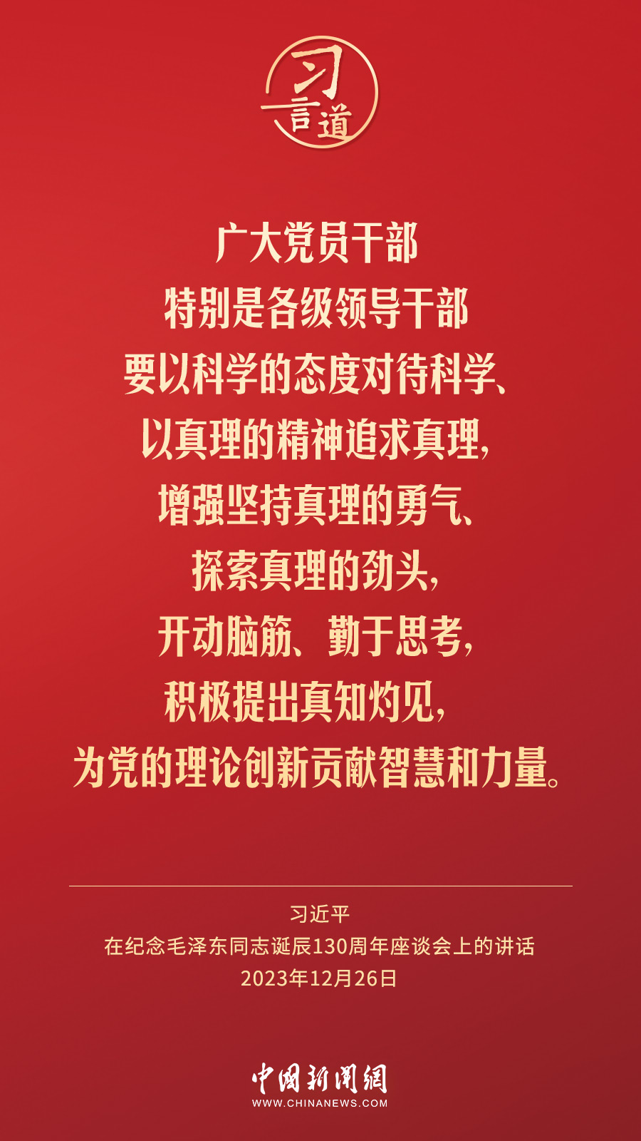 中共中央26日上午在人民大會堂舉行座談會,紀(jì)念毛澤東同志誕辰130周年。中共中央總書記、國家主席、中央軍委主席習(xí)近平發(fā)表重要講話。習(xí)近平指出——