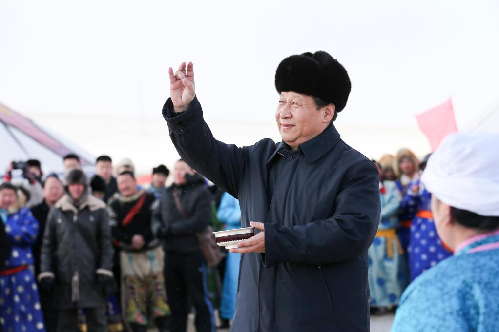 ??2014年1月,習近平總書記在內蒙古調研看望慰問各族干部群眾。新華社記者 龐興雷 攝