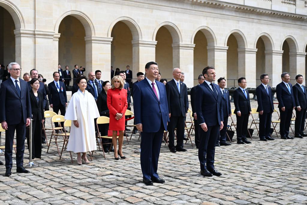 ??五月的巴黎,風(fēng)和景明。塞納河畔,榮軍院金色穹頂熠熠生輝,五星紅旗和藍白紅三色旗迎風(fēng)飄揚。
