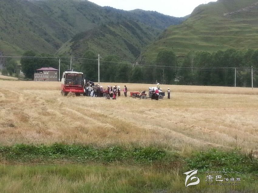 本網(wǎng)訊(孫學(xué)花 文/圖)近日,當(dāng)筆者來到康定縣新都橋時(shí),一片片金黃的麥田展現(xiàn)在眼前,收割機(jī)不停的工作場(chǎng)面,拖拉機(jī)忙碌的來回在天地合牧民家中,豐收的喜悅嵌在牧民的臉上。“現(xiàn)在正是收割的季節(jié),我們根本不用人工,全是機(jī)器設(shè)備,割糧食用的是收割機(jī)是政府給了補(bǔ)貼的,運(yùn)輸不用人工,都是用拖拉機(jī)拉,我們只需要上個(gè)車就完了,麥子曬干了直接用脫粒機(jī),磨面直接用電磨,可以說完全是農(nóng)機(jī)一體化運(yùn)作,我們老百姓是越來越輕松了,糧食產(chǎn)量比以前大幅度提高,因?yàn)槲覀儸F(xiàn)在用科學(xué)種田,用復(fù)合肥、地膜等科學(xué)技術(shù),日子越來越幸福。”瓦澤鄉(xiāng)瓦澤村村民降初高興地分享著他家豐收的喜悅。