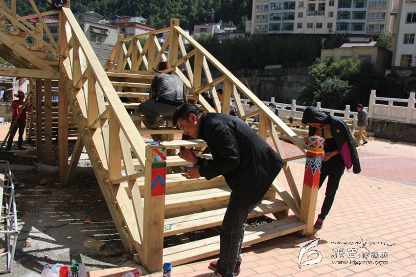 “在深秋艷陽的照射下,環(huán)山路木質棧道的長廊上圖案絢麗色調鮮明。現(xiàn)場有序地堆放著紅色的地磚和白色的木材。藏族畫匠在專心描摹,工人們的鋸子有節(jié)奏地發(fā)出聲音。在公主橋的施工現(xiàn)場,村民們有說有笑地忙著平路基,抬石頭、撮泥巴、砌墻。”這是近日筆者在康定文成環(huán)山路施工現(xiàn)場看到的熱鬧場面。