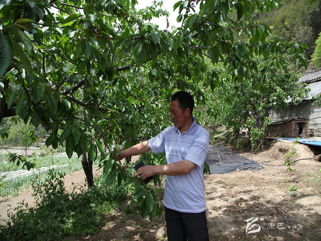 樹林邊是嗡嗡亂飛的蜜蜂,院子下方又是另一番景象。高祥英指著已經(jīng)碩果滿枝的9棵大櫻桃樹對(duì)記者說,如果當(dāng)年不砍掉8棵樹,這片大櫻桃樹現(xiàn)在的數(shù)量應(yīng)該為17棵。提起砍樹的事,高祥英顯得有些后悔。但他話鋒一轉(zhuǎn)說,正是當(dāng)年那次砍果樹的經(jīng)歷,才讓他走上了發(fā)展種植業(yè)的路。