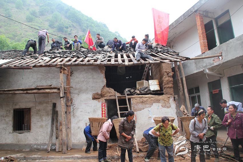 黨員突擊隊(duì)幫助災(zāi)區(qū)群眾恢復(fù)受損房屋。