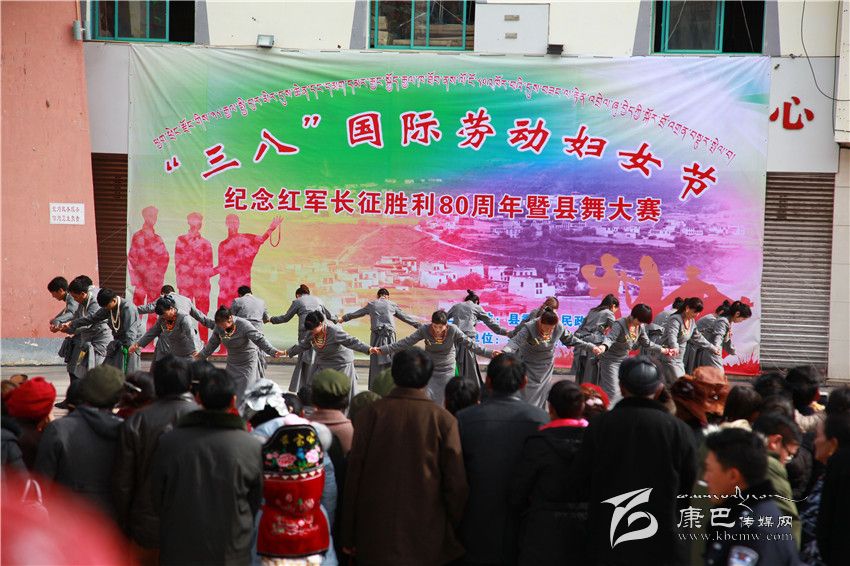 本網(wǎng)訊(何才華文/圖)3月7日,鄉(xiāng)城縣舉行了慶祝“三八”國際勞動(dòng)?jì)D女節(jié)、紀(jì)念紅軍長征勝利80周年暨縣舞大賽。以婦代會(huì)為單位的廣大婦女同胞著艷麗藏裝,隨著縣舞音樂激情舞蹈。為增加舞蹈觀賞性,不少男同胞也加入其中。11支參賽隊(duì)伍,300余名參賽人員為觀眾展示了鄉(xiāng)城縣歷時(shí)兩年收集民間題材編排的首套縣舞。經(jīng)過角逐,縣環(huán)林局、縣交通運(yùn)輸局等婦代小組組成的參賽隊(duì)獲得冠軍。