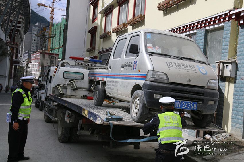 本網(wǎng)訊(記者 鄧安華 唐闖 文/圖)2日上午,記者在康定市北門體育場附近看見幾名交警正在拖移亂停亂放在街邊的一臺車輛。據(jù)悉,為保證藝術(shù)節(jié)期間康定主城區(qū)的交通順暢,康定市公安局交警大隊(duì)從當(dāng)天起以康定主城區(qū)為中心,嚴(yán)厲查處影響交通秩序的各類突出交通違法行為。