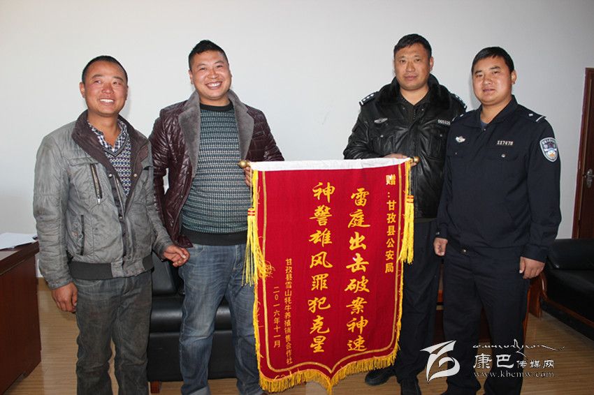 本網訊(余應瓊 文/圖)11月11日,甘孜縣雪山牦牛養(yǎng)殖銷售合作社負責人鄭萬強將一面繡有“雷霆出擊破案神速 神警雄風罪犯克星”的錦旗送到縣公安局,表達對公安干警迅速破案,幫助貧困群眾挽回經濟損失的感激之情。