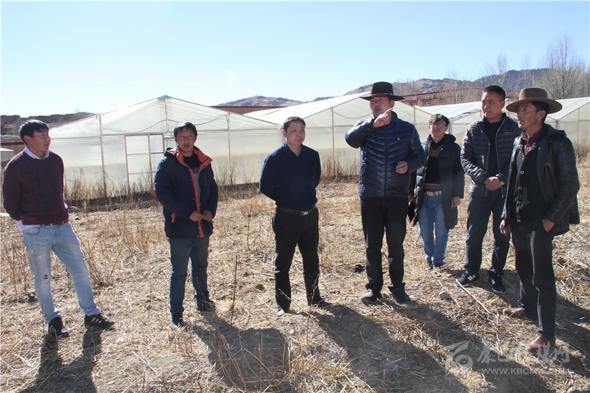理塘縣委副書記、縣政府縣長鄭顯峰(左四)調研產(chǎn)業(yè)扶貧。