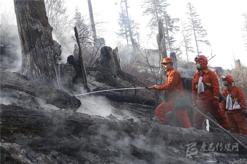 2月10日,火頭蔓延至火場東北一線,參戰(zhàn)官兵發(fā)現(xiàn)幾處被冰雪覆蓋的水源,火場前指決心改變戰(zhàn)法,采用7組水泵串聯(lián)接力向火場供水主攻明火,常規(guī)機具輔助配合消除煙點的方式,將部隊分為水泵和常規(guī)機具兩個梯隊,在火場火勢最為猛烈的東北側展開滅火作戰(zhàn)。參戰(zhàn)官兵用自身攜帶的鍬鎬奮力破冰面抽水,在水泵的助力下,明火得到了有效壓制并逐步熄滅。隨后,部隊和地方群眾全部轉入火場清理看守階段。