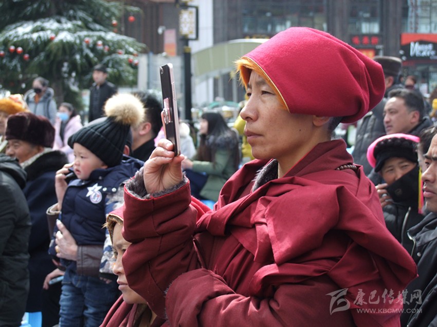 積雪還沒(méi)融化,雖然天氣寒冷、道路濕滑,卻絲毫不影響康定市民歡度藏歷新年的熱情。上午11時(shí),演員們?cè)缭鐏?lái)到了演出現(xiàn)場(chǎng),換裝、練聲……精心準(zhǔn)備著;工作人員們貼心的放上板凳,方便群眾觀看演出;臺(tái)上,動(dòng)聽的歌聲、悠揚(yáng)的旋律、歡快的舞步吸引著觀眾的目光。臺(tái)下,觀眾熱情高漲,掌聲不斷。