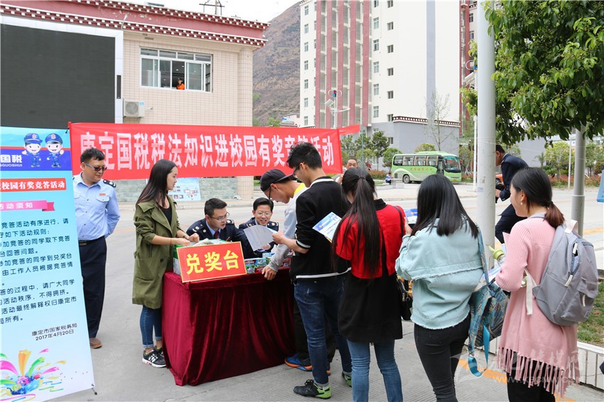 本網(wǎng)訊(吳海波 記者 張嗥)購物時(shí)商家不給發(fā)票,可以打哪個(gè)電話進(jìn)行投訴?增值稅納稅人分為哪幾類?”這一系列與生活息息相關(guān)的稅法知識(shí)有獎(jiǎng)答題,引來了眾多四川民族學(xué)院同學(xué)的熱情參與。4月20 日,康定市稅法宣傳月活動(dòng)持續(xù)升溫,稅法宣傳首次走進(jìn)高等院校。