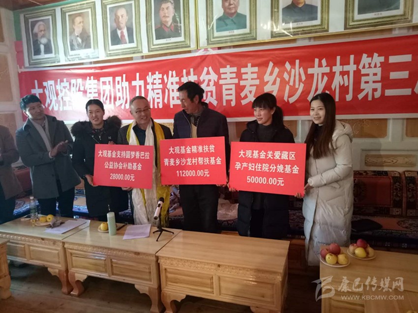 據(jù)悉,上海大觀慈善基金會黃宏文理事長一行先后到由于室內(nèi)電線短路遭受火災的水洼鄉(xiāng)和定波鄉(xiāng)受災戶家中探望,詳細了解災情和災后生產(chǎn)生活狀況后,分別捐贈7萬元和3萬元。隨后,前往青麥鄉(xiāng)沙龍村召開大觀控股集團幫扶沙龍村精準扶貧推進會,發(fā)放幫扶資金11.2萬元用于該村各項事業(yè)的發(fā)展,同時為鄉(xiāng)城縣衛(wèi)計局農(nóng)村產(chǎn)婦住院分娩基金捐贈5萬元,為圓夢香巴拉公益協(xié)會捐贈2.8萬元。