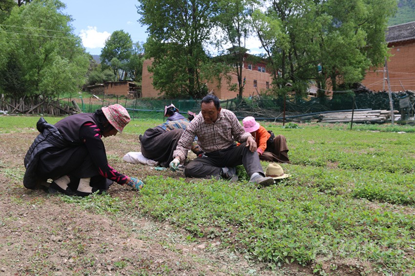今年4月,德格縣開始在中扎科鄉(xiāng)等農區(qū)推廣發(fā)展庭院經(jīng)濟,動員群眾利用家庭院壩種植蔬菜,實現(xiàn)自給自足并改善人居環(huán)境。崩東寺僧人了解這一情況后,主動向鄉(xiāng)里申請學習種菜技術、建設菜園以實現(xiàn)日用菜的自給自足;獲悉此情況后,縣農牧農村和科技局、鄉(xiāng)黨委政府在寺廟附近協(xié)調租用4畝閑置土地,為該寺建起了菜園,并配套建設了灌溉儲水池、水肥一體化糞池、噴水管道、圍墻等配套設施。4月底,縣農牧農村和科技局組織該寺僧尼到本鄉(xiāng)新建的蔬菜種植基地進行了為期兩天的觀摩學習;5月初,縣鄉(xiāng)干部和寺廟僧人共同在菜園種下了茄子、西葫蘆等十幾種蔬菜,所用的菜種、肥料、薄膜都由該縣庭院經(jīng)濟推廣項目支出。
